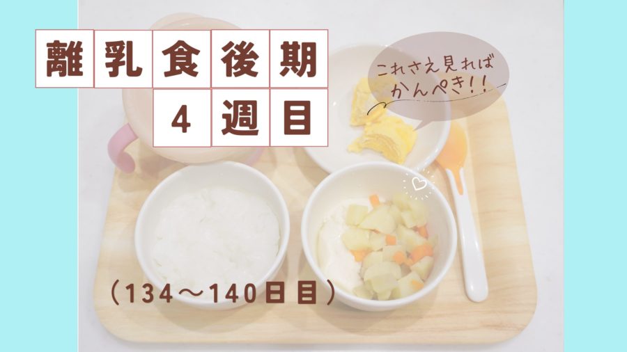 離乳食に悩んでいるママへ。この記事では、離乳食後期4週目(134~140日目)の献立…