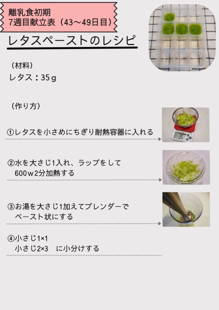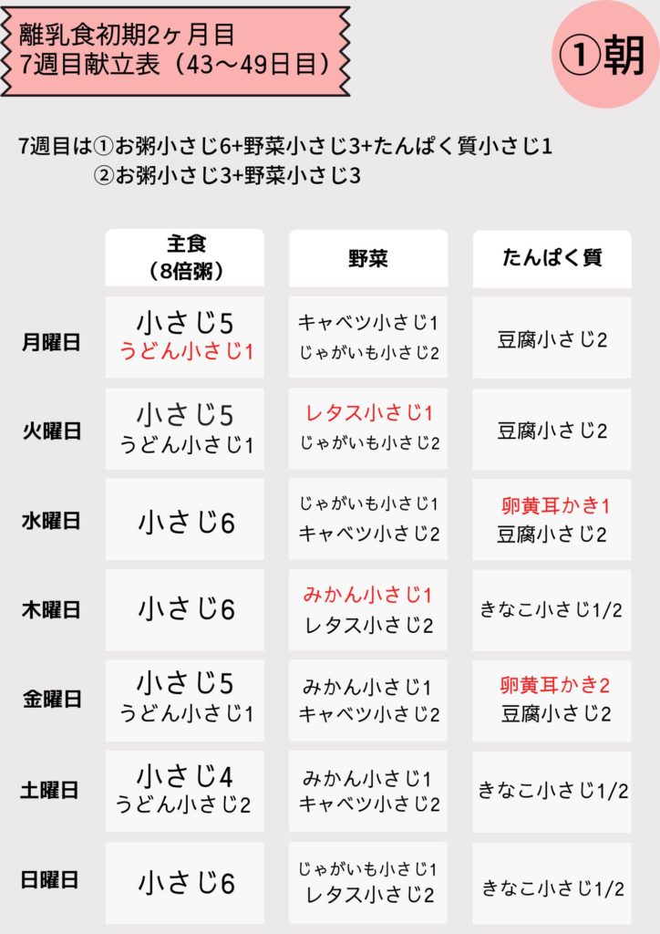 離乳食初期7週目(43~49日目)の献立表