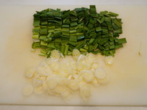 ニラは1〜2cm長さ、長ねぎは小口切りにする