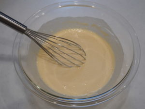 ボウルに薄力粉・片栗粉・卵・水を入れ、ダマがなくなるまでよく混ぜる