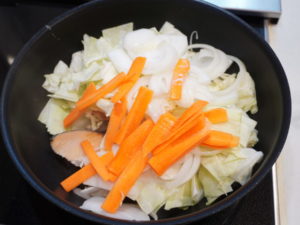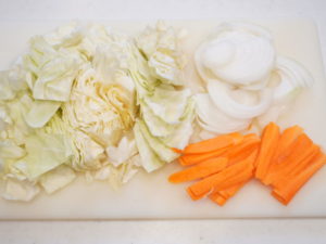 キャベツ:ざく切り/玉ねぎ:薄切り/人参:短冊切り