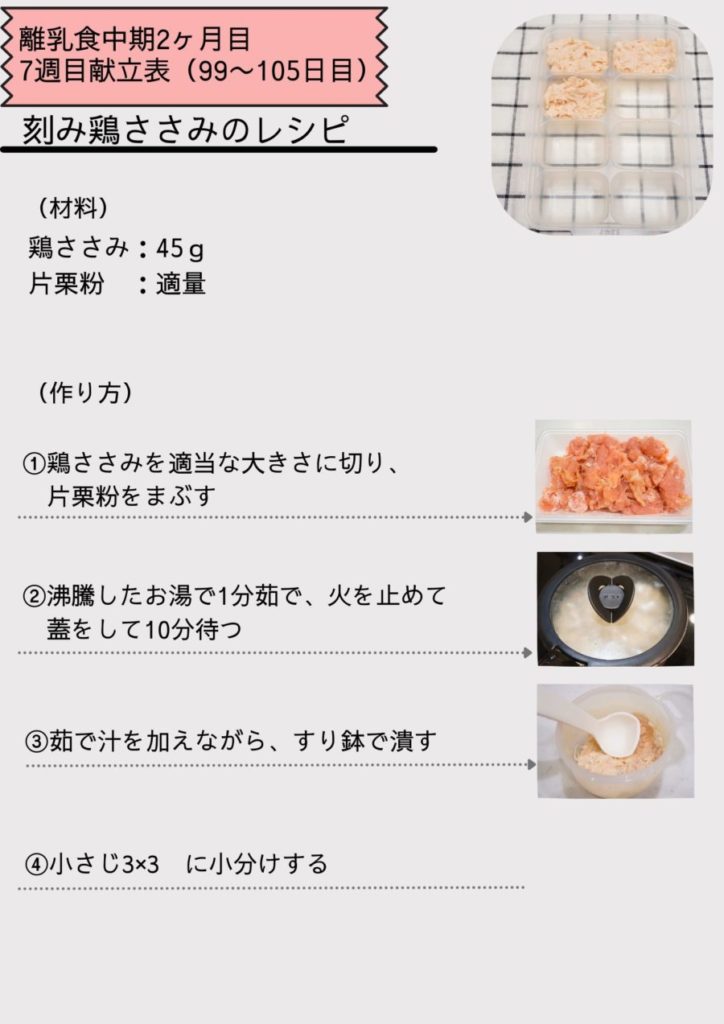 離乳食中期7週目(99~105日目)の献立表