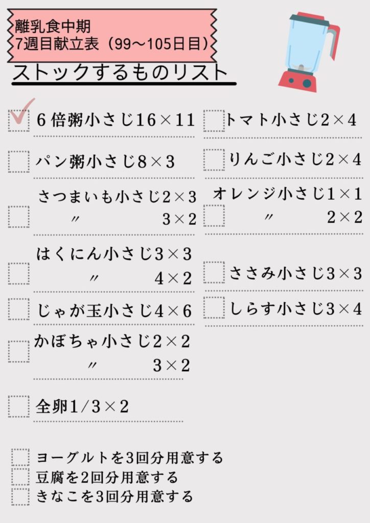 離乳食中期7週目を進めるうえでストックするものをまとめました。