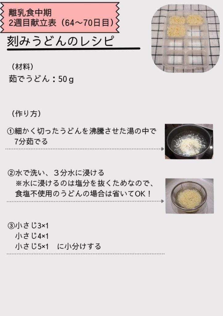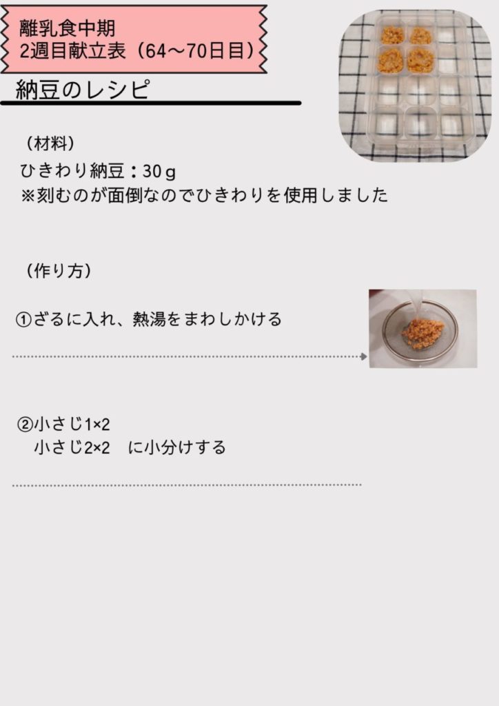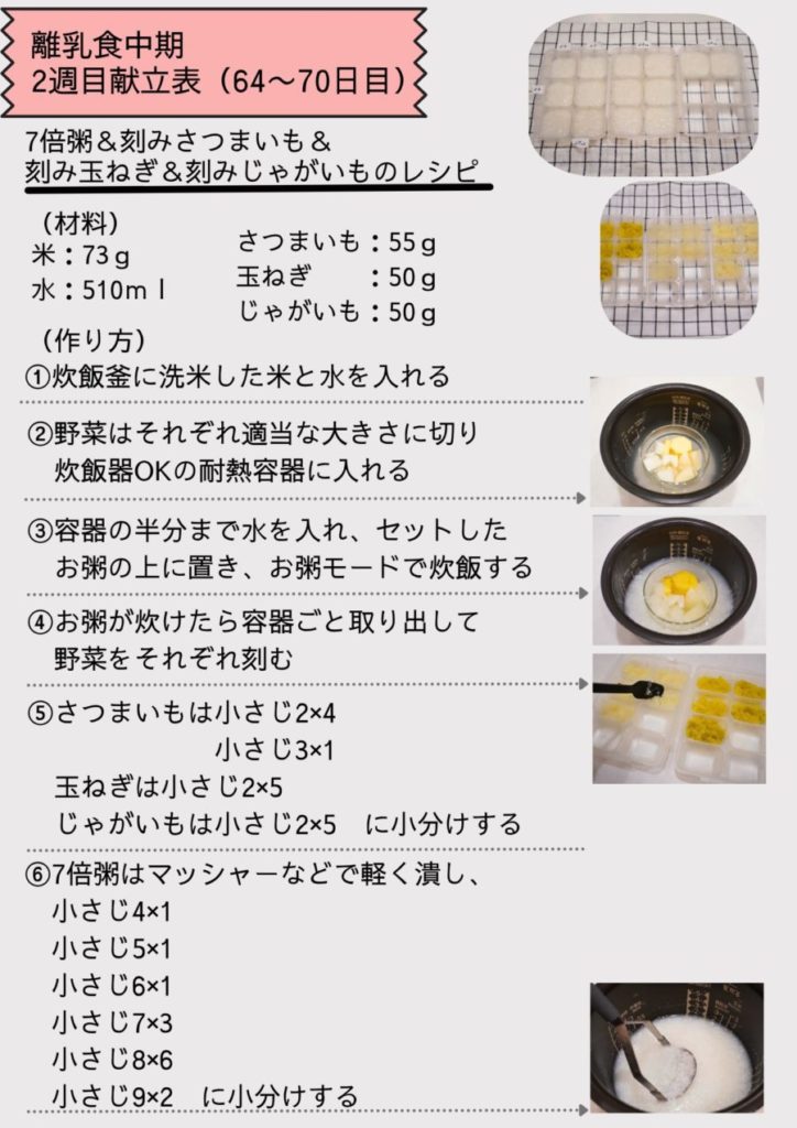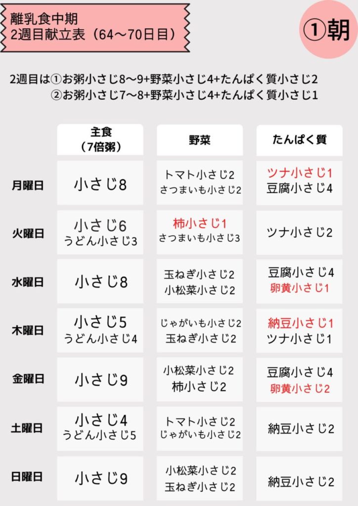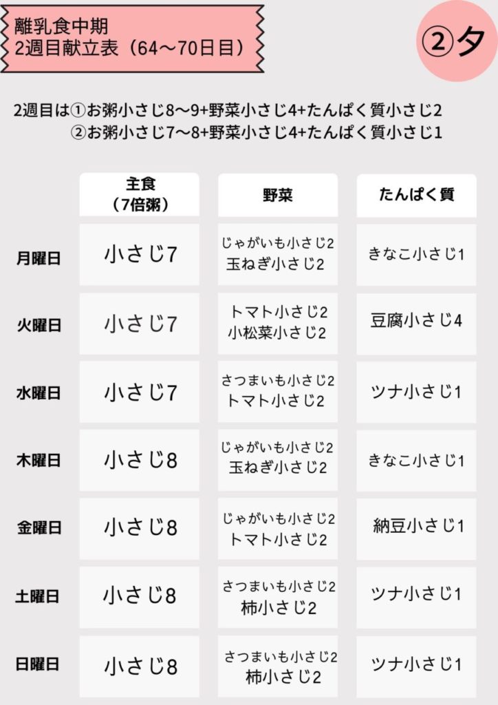 離乳食中期2週目(64~70日目)の献立表