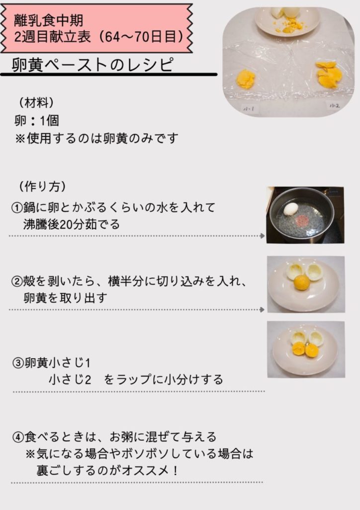 - 卵黄や鶏ささみなどアレルギーの出やすい食材はごく少量から始めます