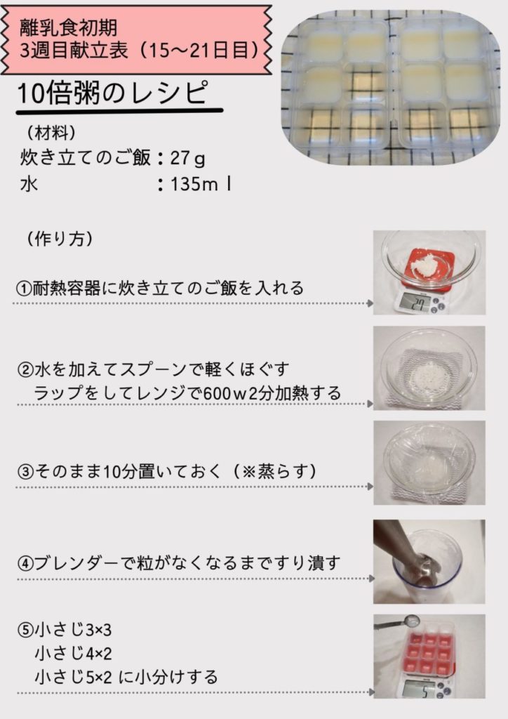 初期はまだ食べる量が少ないので、炊き立てのご飯を使って、電子レンジで作るのがオススメです。