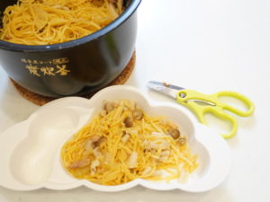 取り分けなしで、1歳から一緒に食べられる炊飯器パスタ。